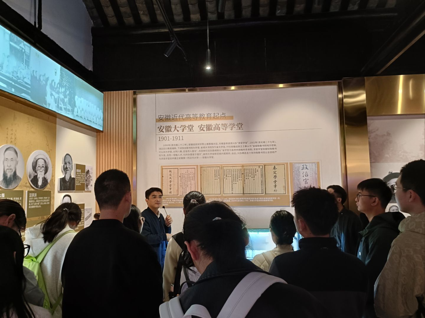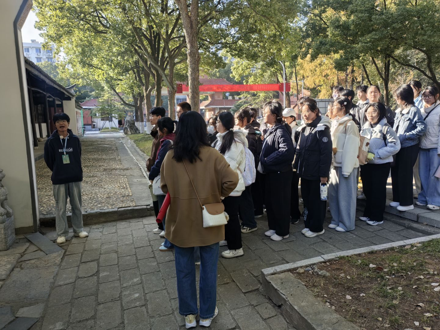 在实地参观环节,有序组织新生分批参观具有百年文脉的敬敷书院(校史展厅)及标志性建筑安徽大学红楼。学生们通过近距离接触历史场所、聆听生动讲解,在沉浸式体验中加深了对学校传统与精神文化的直观理解。